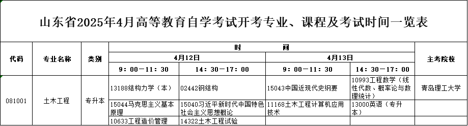 本文标签:山东自考 4月本科专业计划 2025年4月山东自考本科土木工程专业考试计划