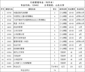 本科行政管理专业主考院校:山东大学